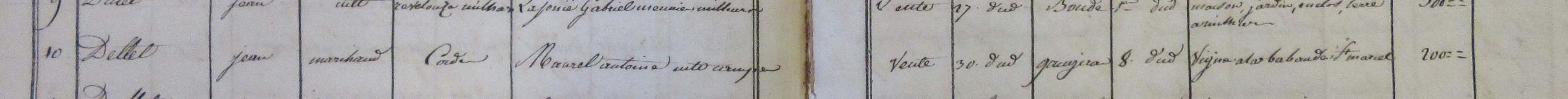 1813: Jean DELTEL vend une vigne à Antoine MAUREL