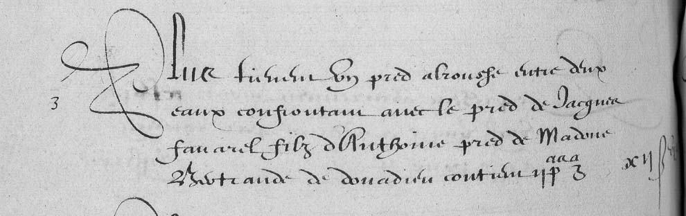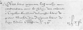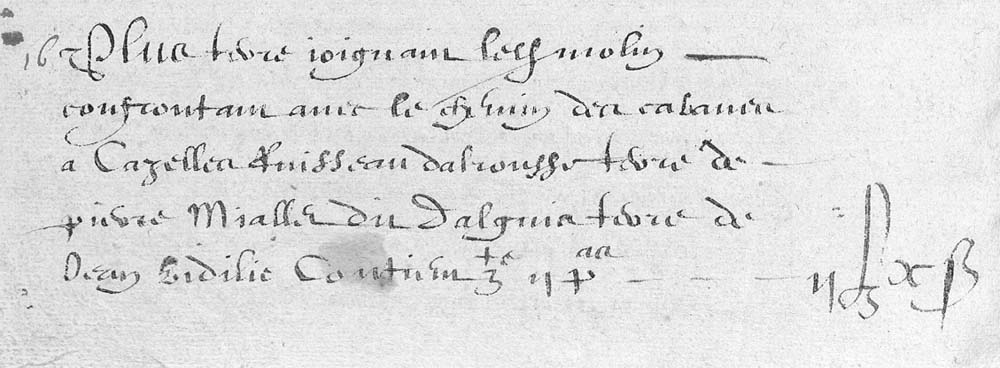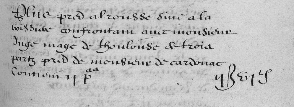 | 16 | PLus pred alrousse si?e a la boissiere confrontan avec monsieur Juge mage de thoulouse de trois partz pred de monsieur de cardonnac Contien II Pas - - - - - IIβ VIδ |