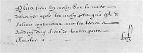 | 13 | Plus tiem un molin Sur la riviere dalrousse apelé lou moly petis qu'a esté de Salinie confrontan avec les terres et jardin dudit Sieur de toutes parts Avalue a - - - - - - - - - - - - - - - -LX£ |
