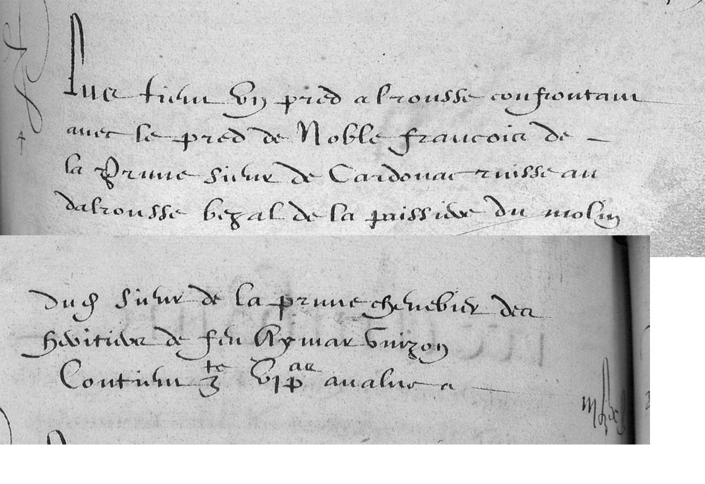 | 10 | Plus un pred audit alrousse confrontan avec le pred de Sire Jean fanarel de deux partz chemin des cabanes a prad bouye terre de monsieur de cardonnac Contien Zta I Pa - - - - II£ IIβ VIδ |